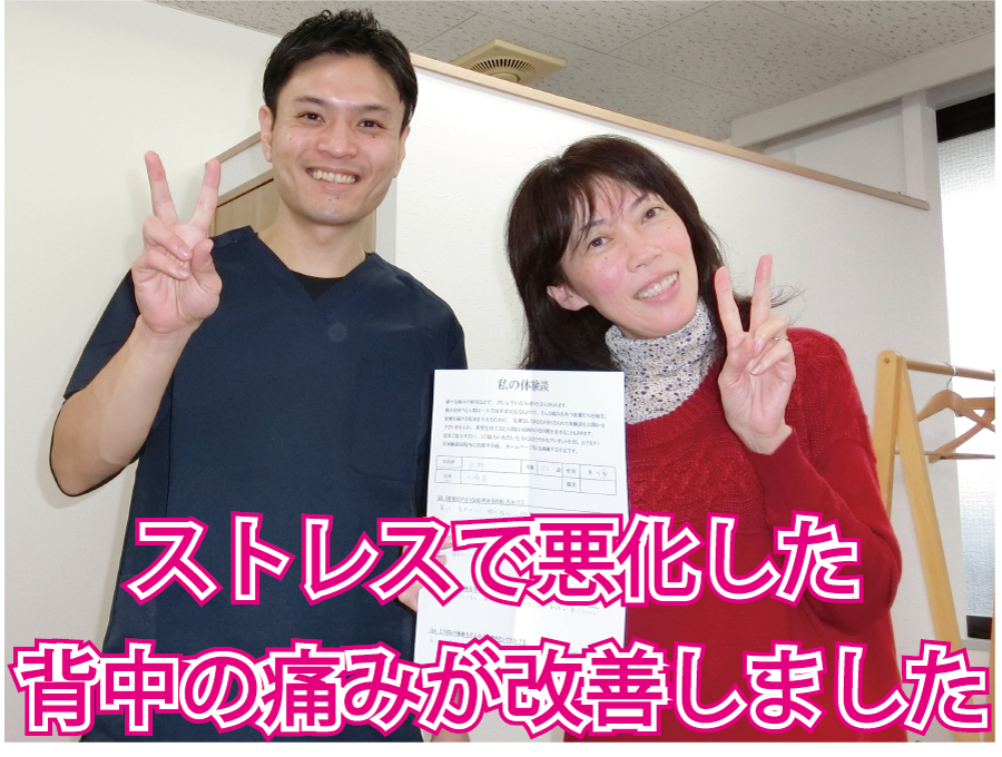 施術後、背中がふっと緩んで久しぶりに大きく息を吸えた時、泣きそうになるくらいホッとしました。