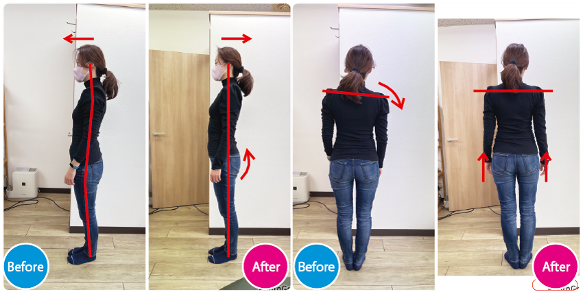 私は20代の頃から姿勢が悪く、いくつかの整体やマッサージに通ってきましたが、なかなか改善にはつながらず悩んでいました。週に3〜4回は頭痛があり、デスクワークが続くと夕方には首や肩、背中の痛み、足の冷えやむくみにも苦しんでいました。