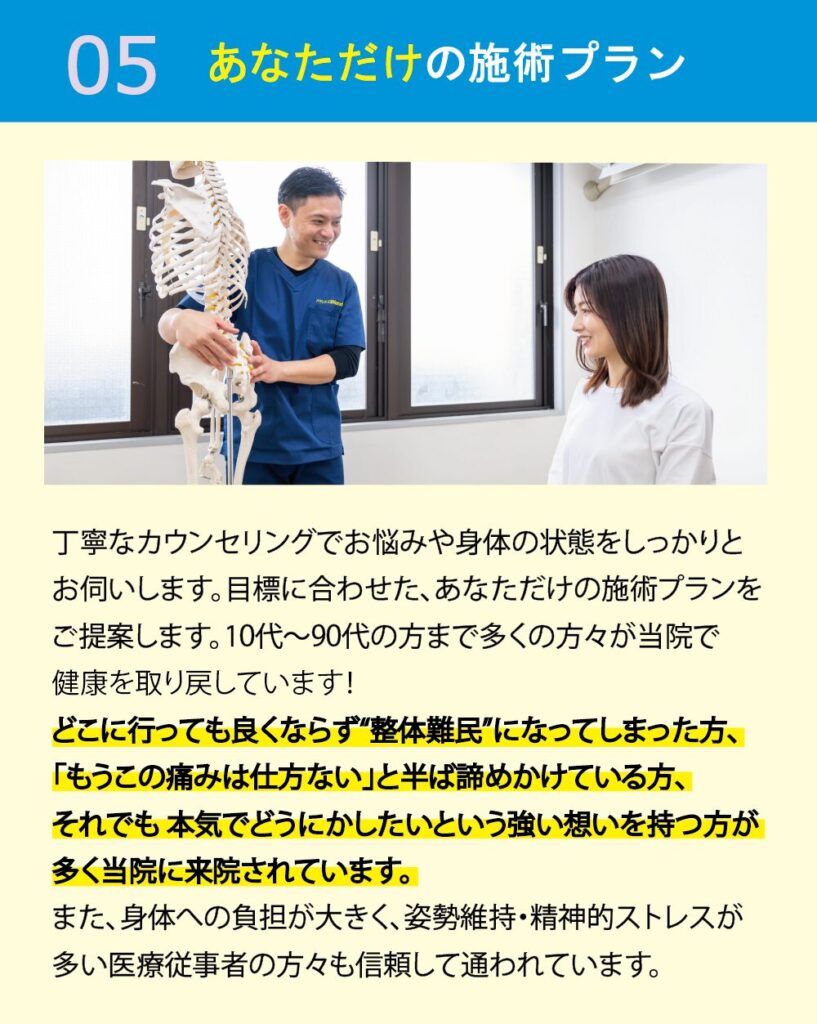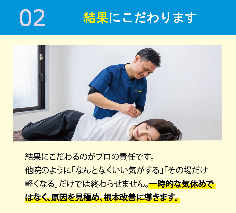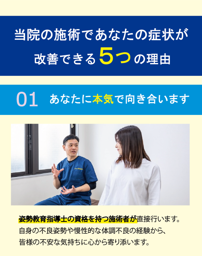 お身体の痛みや不調でお困りの方に対し、お力になれるよう根本的な改善を目的とした施術を行っております。ご理解のほどよろしくお願いいたします。