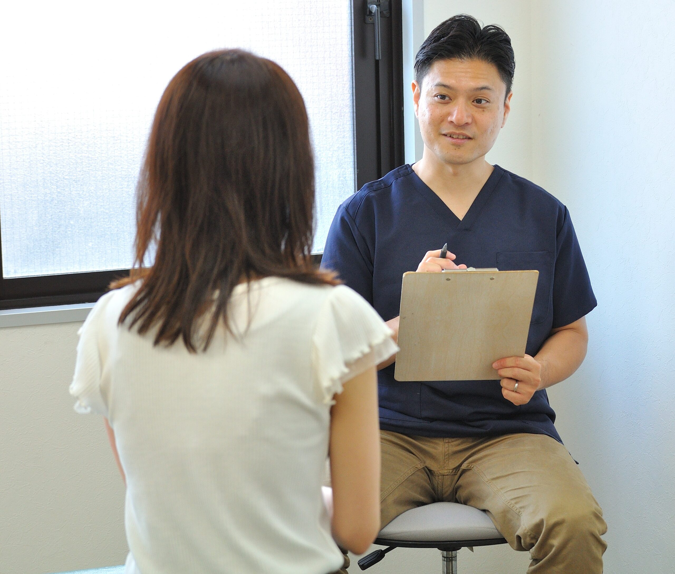お忙しい中ご来院頂いた皆さまに、ぜひ一回目で改善効果を感じて頂けるよう、ここで詳しくお話しをお聞かせいただいております。